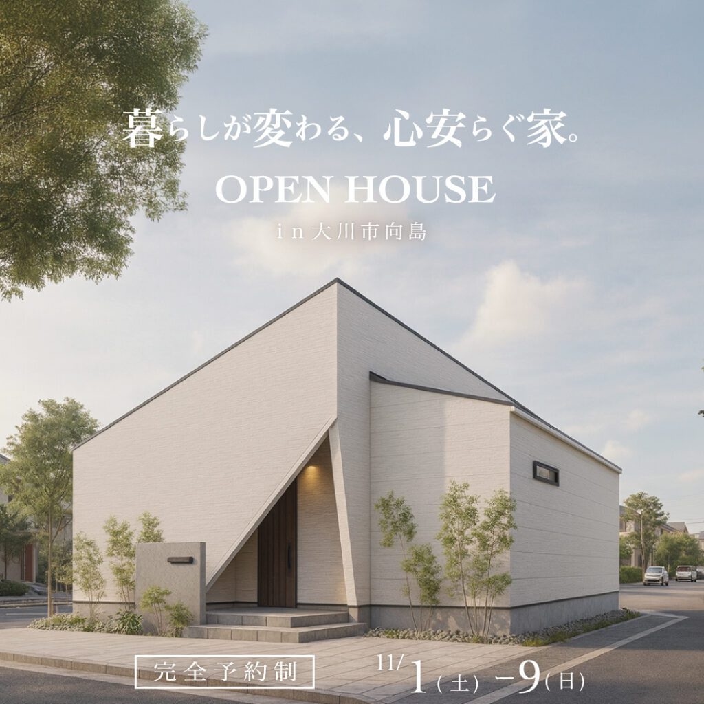 この度、お施主様のご厚意により大川市向島にて「平屋の完成見学会」を開催することとなりました!
