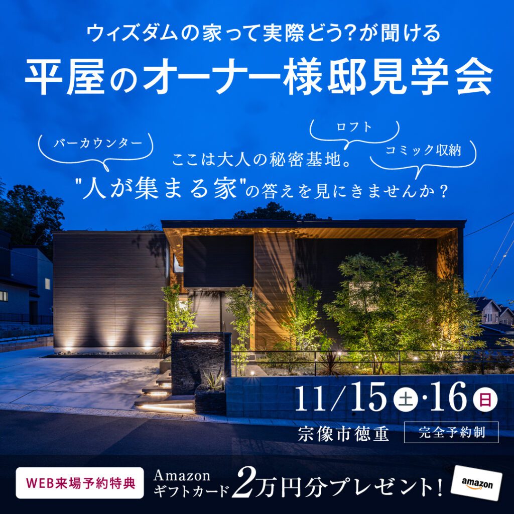 この度、お施主様のご厚意により宗像市徳重にて「平屋のオーナー様邸見学会」を開催することとなりました!