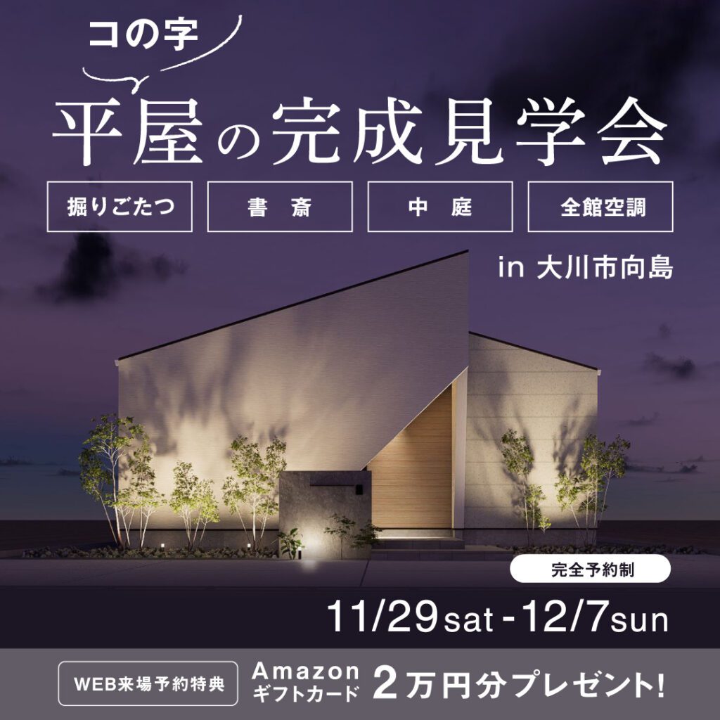 この度、お施主様のご厚意により大川市向島にて「平屋の完成見学会」を開催することとなりました!