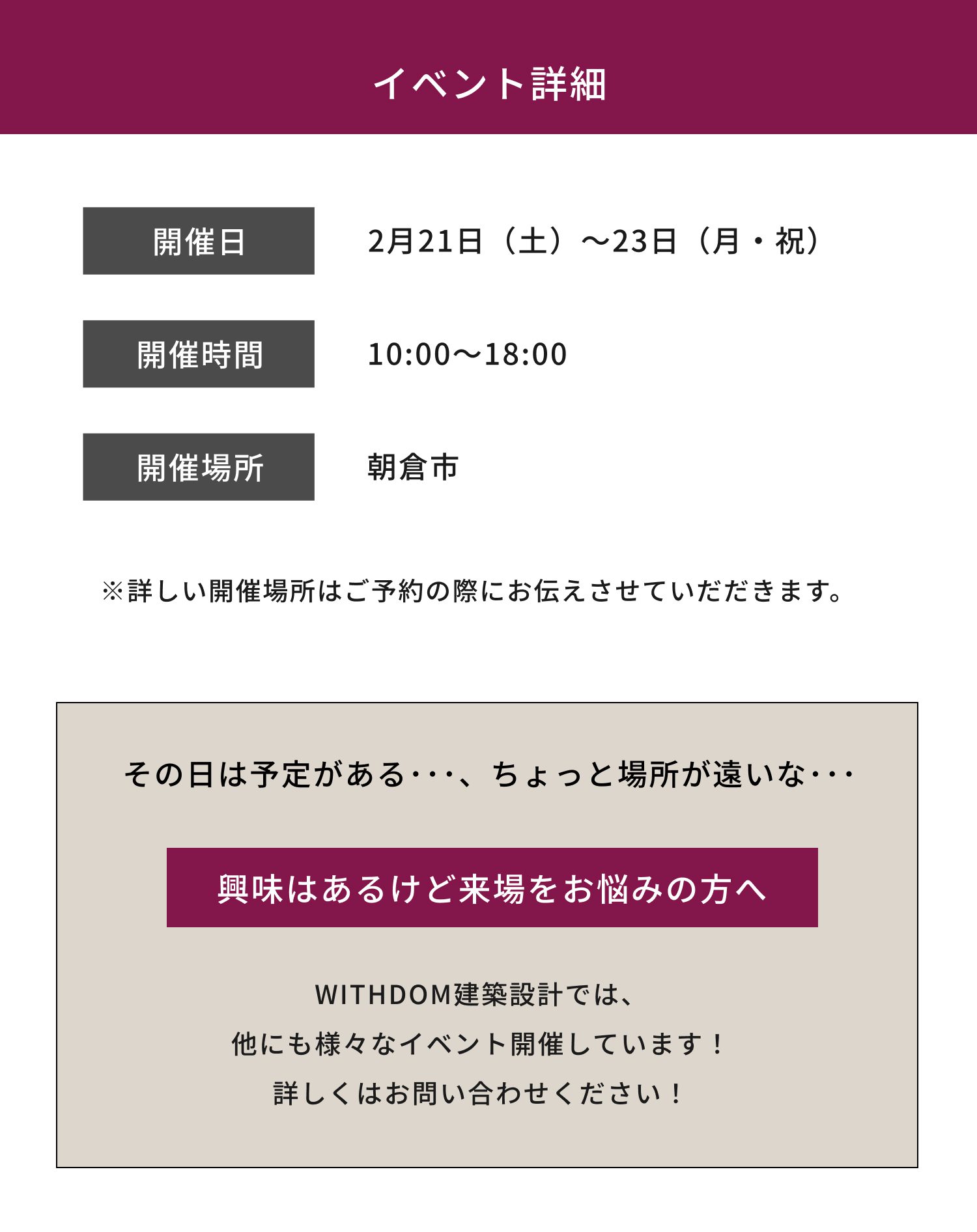 ぜひ、この機会にWITHDOM建築設計が建築するリアルなお家をご見学ください。