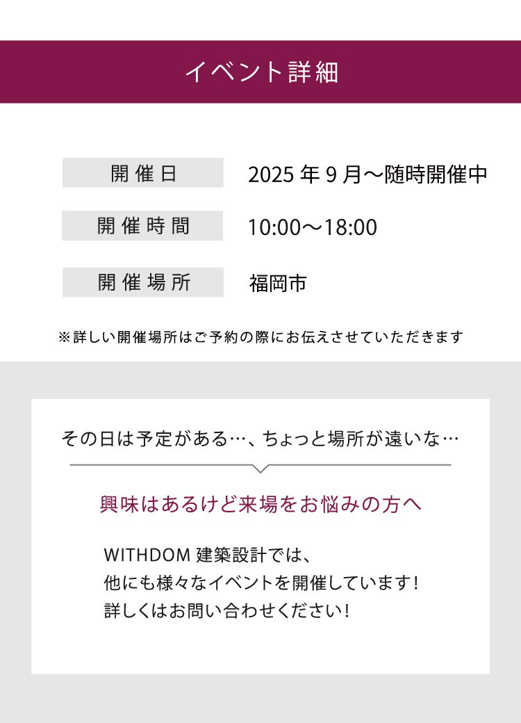 ぜひ、この機会にWITHDOM建築設計が建築するリアルなお家をご見学ください。