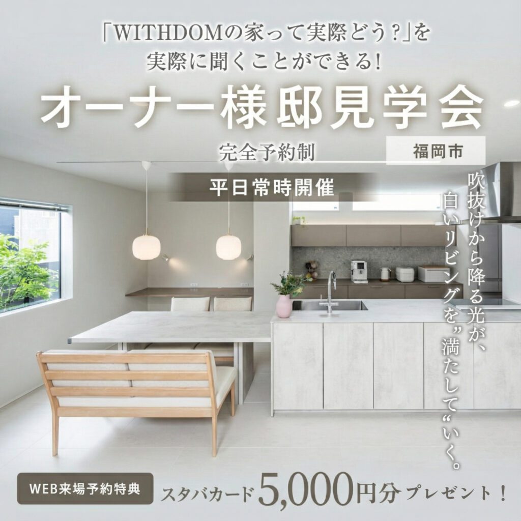 ぜひ、この機会にWITHDOM建築設計が建築するリアルなお家をご見学ください。