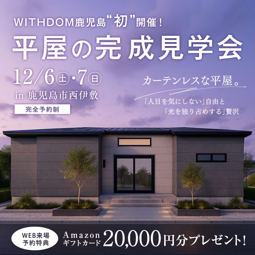 この度、お施主様のご厚意により鹿児島市西伊敷にて完全予約制で「平屋の新築完成見学会」を開催することとなりました!